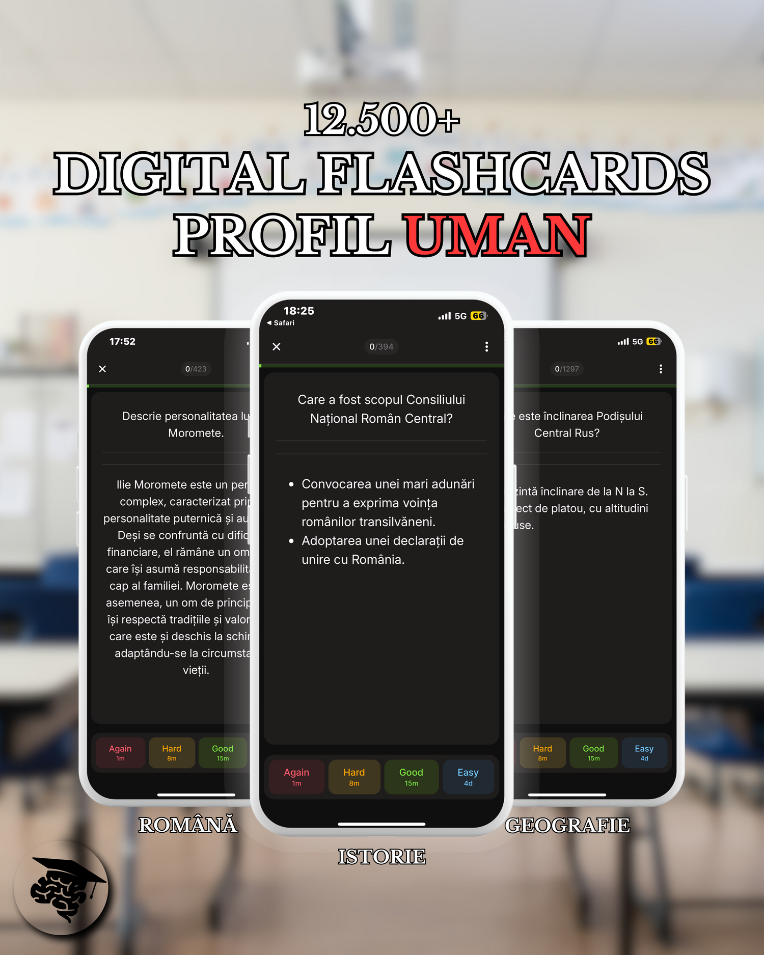 În urmă cu doi ani, am creat aceste flashcarduri special pentru admiterea la Medicină, având ca obiectiv să oferim un instrument de învățare bine structurat, ușor de parcurs și extrem de eficient. De atunci, ele au ajutat mii de elevi să se pregătească temeinic pentru unul dintre cele mai dificile examene. Datorită clarității informațiilor și a modului logic în care sunt organizate, aceste materiale au devenit rapid unele dintre cele mai apreciate și căutate resurse de pregătire, fiind considerate esențiale de cei care au reușit să intre la Medicină.